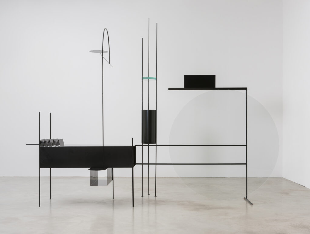 MARLENA KUDLICKA W B C Humberger Toggle Menu Elements of Peaceful Engagement Solo Show 2016, powdercoated steel, glass, © Marlena Kudlicka