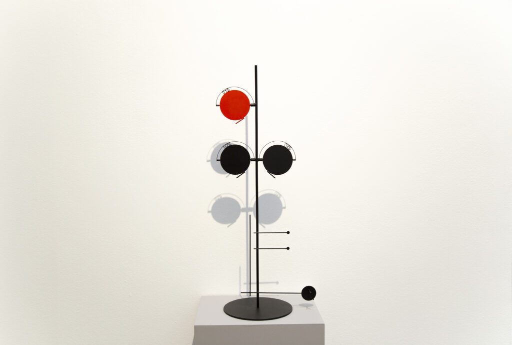 MARLENA KUDLICKA W B C Humberger Toggle Menu shape hypothesis test 7.1′ 2023, sculptural collage powdercoated steel, © Marlena Kudlicka