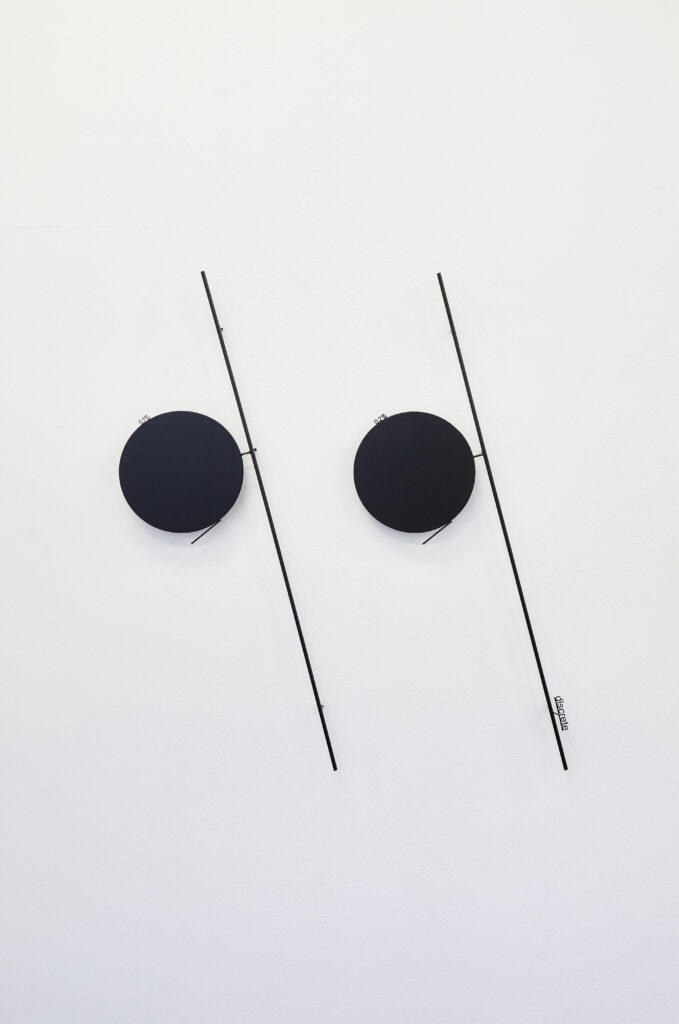 MARLENA KUDLICKA W B C Humberger Toggle Menu f=different 9/9′ 2016 sculptural composition on wall powdercoated steel glass 210 x 300 x 10 cm © Marlena Kudlicka
