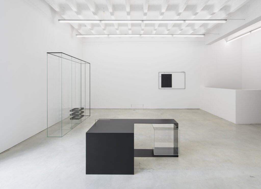 MARLENA KUDLICKA W B C Humberger Toggle Menu “Interiors of Gentleness” Barbara Thumm Berlin New Viewings © Marlena Kudlicka works: ”Elements of Peaceful Engagement.recipe” 2020 ; ”blunt angle” 2020 ; ”except c” 2020 ; ”option 0,1% A” 2020 powdecoated steel, glass